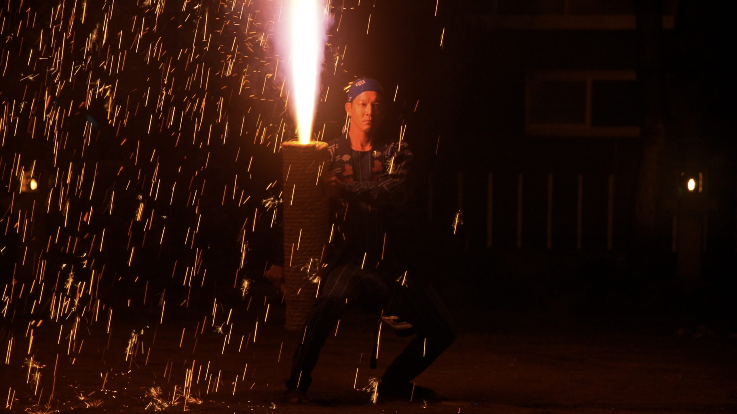 江戸時代に愛知県豊橋市が発祥とされる、手筒花火。その手筒花火に夢中な晃。